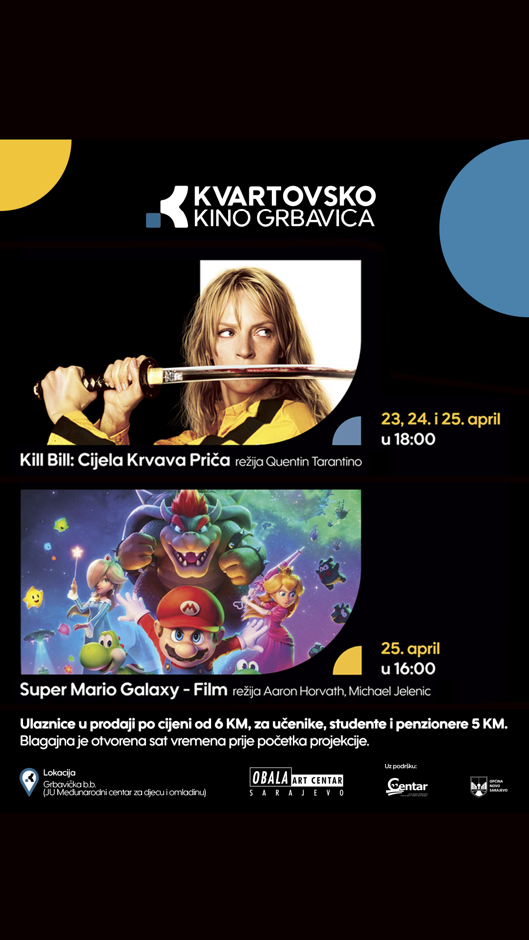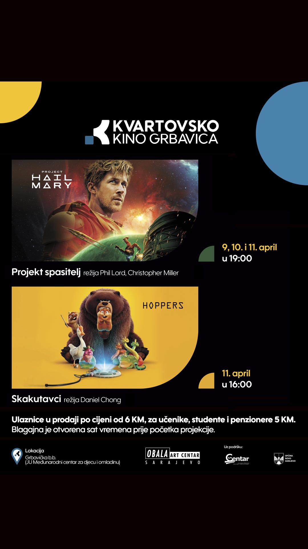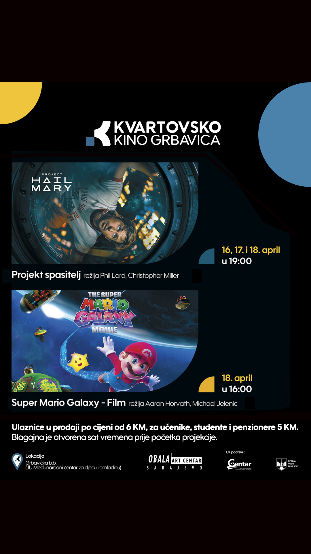 Ulaznice za projekcije dostupne su po cijeni od 6 KM, dok učenici, studenti i penzioneri ostvaruju pravo na ulaznicu po cijeni od …